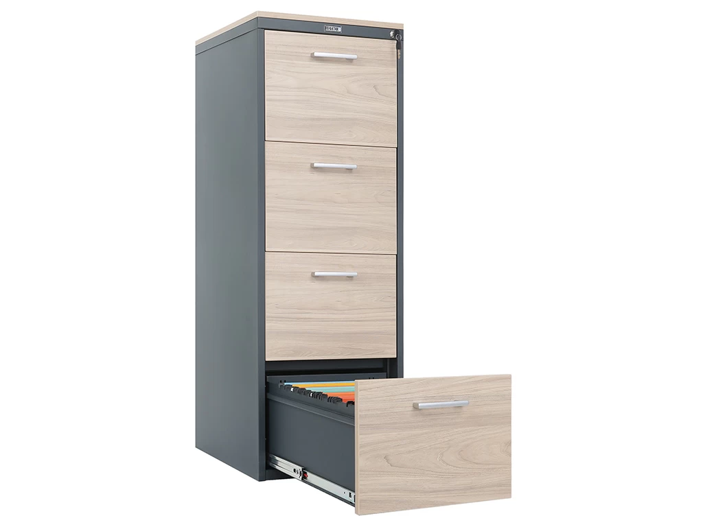 Максимально вместительная модель для систематизации больших объёмов документации, подходящая для крупных компаний, архивов и делопроизводственных отделов. Четыре выдвижных ящика позволяют удобно структурировать материалы по категориям, отделам или срокам хранения. Модель продумана до мелочей: от прочной конструкции, прошедшей промышленные испытания, до встроенной защиты от опрокидывания. Полное выдвижение ящиков обеспечивает быстрый доступ даже к документам, размещённым в глубине. Эстетическая универсальность достигается благодаря опции изменения цвета фасадов, а компактные габариты делают AFC-04LC удобной в размещении вдоль стены или в составе офисной мебели. Данное решение сочетает в себе удобство, безопасность и длительный срок службы.